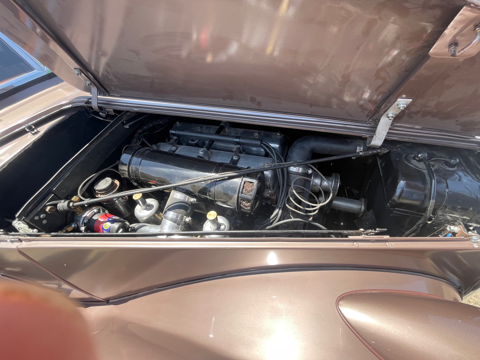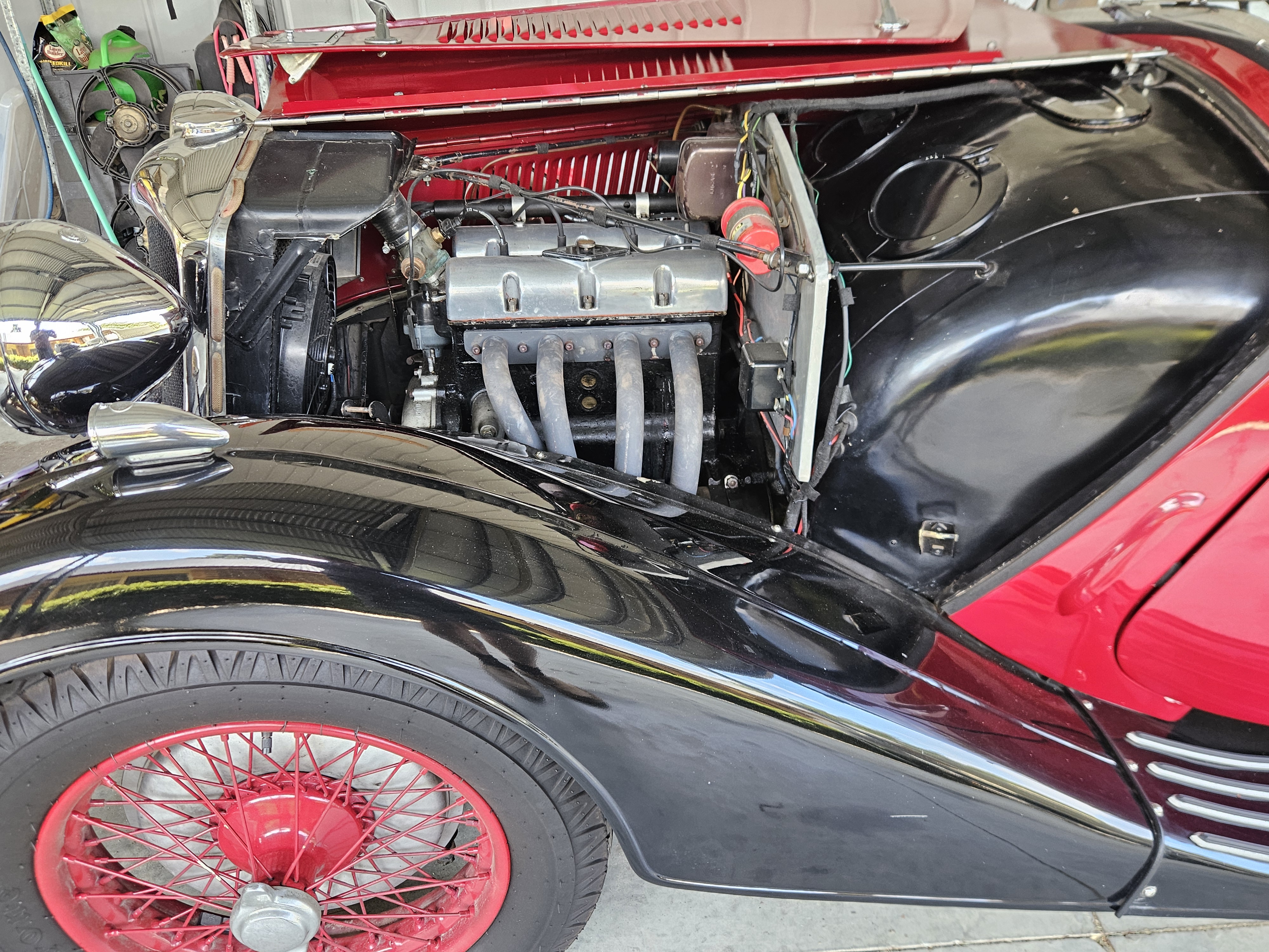 The restoration of this car was completed many years ago by a previous owner who replaced most of the ash frame, fitted a totally new interior, had the engine re-built, replaced the bands in the Pre-Selecta gearbox, and had the car re-painted in its original colour scheme. I purchased the car in 2004 and since then, the following extra work has been carried out: Engine has been rebuilt with new Argo con rods with slipper bearings, neoprene rear main oil seal, twin 1 ½” SU carburettors fitted to Sprite log manifold, exhaust extractors, high compression pistons, camshaft grind for better performance, rear axles replaced, all four splined hubs replaced, all wheel bearings replaced and a Davies Craig electric water pump fitted. The preselector gearbox has also been fully reconditioned including needle roller bearings replacing the bronze bushes. A single plate flywheel with teeth cut into perimeter has also replaced the heavy cast iron flywheel and clutch assembly. A 4.55: 1 crown wheel and pinion has been fitted and the bearings in the differential and torque tube have also been replaced. The generator has been converted to an alternator. A year ago, I fitted four new (plus new spare) Firestone tyres. A Davies Craig thermatic fan has also now been fitted to work in conjunction with the already fitted Davies Craig electric water pump. The Kestrel drives very well and will comfortably sit on 100 kph on the freeway and with the preselector gearbox is a pleasure to drive. If you are anxious about driving with a preselector gearbox, I will teach you.